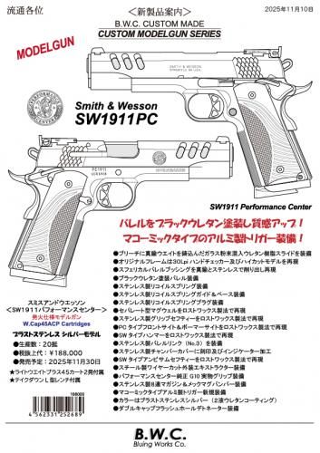 ご予約承り中。 BWC S&W SW1911PC ブラストステンレス シルバーモデル モデルガン